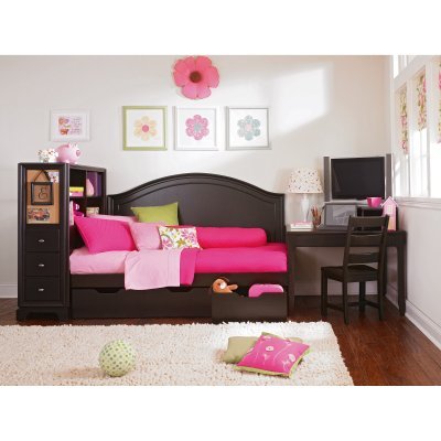 Shop for Bedroom Furniture Mart from BedroomFurnitureMart.com! Crafted in a modern lifestyle design the Midtown Storage and Study Daybed combines an attractive daybed panel twin-sized platform bed storage headboard corner desk unit and chair to create an entire sleep storage and study area. The ingenious storage headboard has it all: two fixed shelves and two adjustable shelves above the bed head great for books or knickknacks; three roomy drawers on one side and a single-shelf cupboard on the other for even more storage; and a corkboard panel that's perfect for pinning pics or reminders. The desk has a corner hutch with three cubbies and wire management openings to guide cords neatly out the back. A matching chair completes this perfect spot for study or entertainment. Simply attach the corner desk to bed rails for extra stability. Add an optional trundle for your overnight guest or a three-drawer under-bed storage set for still more space. Store games toys or extra bedding as each drawer box rolls neatly on casters under the bed. All pieces in this kids bedroom collection are constructed of hardwood solids and hand-select veneers in a rich dark cherry finish. Case fronts are framed with a light molding and drawers have oval pulls with a polished chrome finish.Dimensions:Overall dimensions: 136.5L x 45W x 54H inchesTwin bed: 76.5L x 41W x 19H inchesDaybed back panel: 75W x 3D x 52H inchesCorner desk: 43W x 43D x 38H inchesStorage headboard: 45W x 17D x 54H inchesChair: 18W x 22D x 39H inchesTrundle: 75W x 40D x 10H inches3-drawer under-bed storage: 25W x 25D x 13H inches each drawerAbout Lea IndustriesLea Industries is a leading manufacturer of youth furniture. Lea offers a wide assortment of styles for both girls and boys with a broad selection of specialized functional designs for today's active kids - including four-poster canopy beds bunk beds storage beds dual sleep beds student desks and learning centers for youth computing. Each piece is crafted from fine