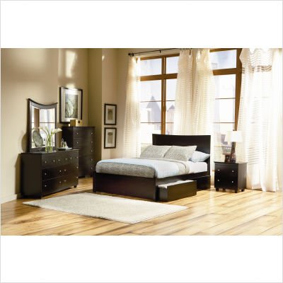 AP8732171 / AP8742171 / AP8752171 / C-74201 Size: Full Dresser/Mirror and Chest Not Included The Miami has a modern feel with its slightly concave arch and flat panel design headboard. Sleek styling and a ravishing deep dark finish accents the modern look. It may be set high to accommodate flat panel storage drawers or set low for the popular platform bed look. This platform bed is complimented by the Miami Case Goods, completing your new modern room. The Miami is constructed of solid Eco-friendly Hardwood and finished with our five step high build finishes. Features: -Set includes platform bed and nightstand. -Miami collection. -Espresso finish. -Platform bed is available in Full, Queen or King size. -100pct Solid hardwood construction. -Modern style. -Bed has easy hook and pin assembly. -Non toxic or lead free finish. -Two height adjustable setting for bed. -Bed can accommodate under bed additional storage drawers or trundle. -Bed has flat panel footboard and drawers and also includes slat kit. -Nightstand features brushed nickel drawer knobs and metal drawer glides. -English dovetail joints on all two spacious storage drawers of nightstand. -Eco friendly. -Assembly required. -Manufacturer provides one year warranty. Specifications: -Full platform bed dimensions: 47.25'' H x 56.125'' W x 82.75'' D. -Queen platform bed dimensions: 47.25'' H x 63'' W x 88.25'' D. -King platform bed dimensions: 47.25'' H x 79.125'' W x 88.25'' D.